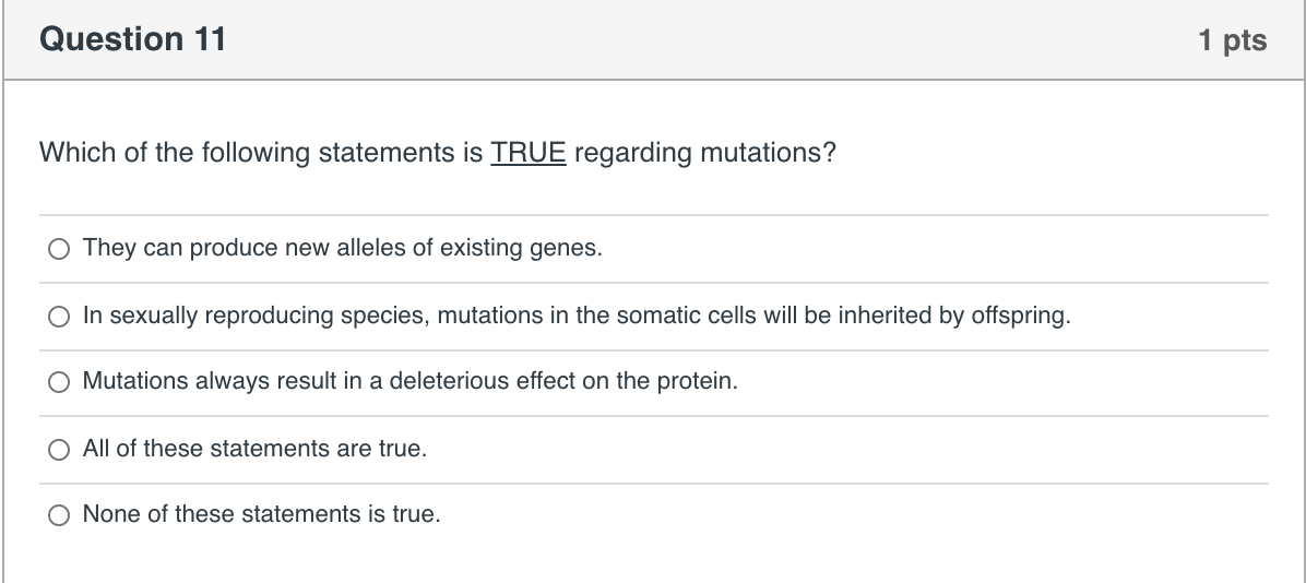 Solved Which Of The Following Statements About Mutation Is Chegg Com